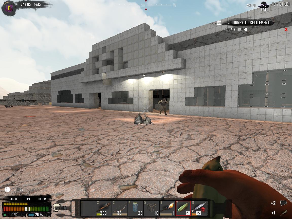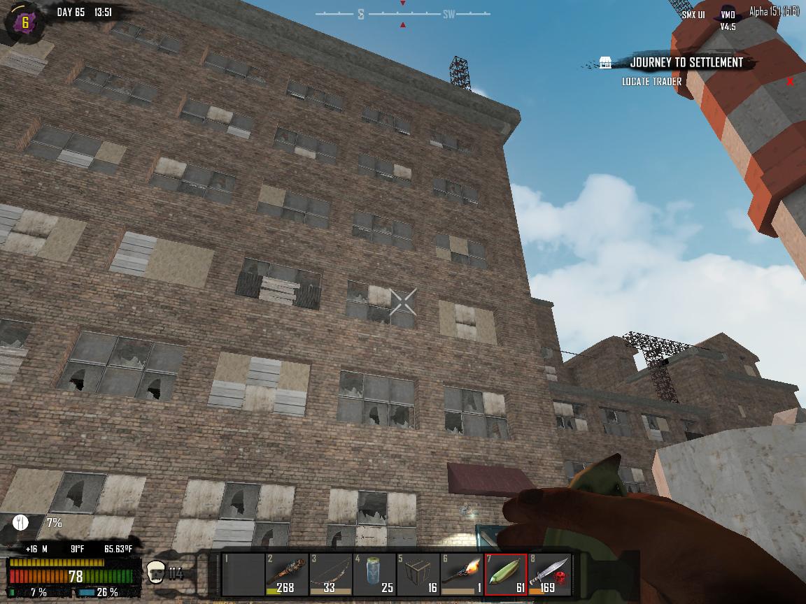 そうして死の恐怖から逃げたけど、その後にまた再チャレマンションした時にどえらい目(マンションから飛び降り逃走にヘタこいて複雑骨折し、くっそ遅い速度の中での逃亡>即ゾンビに見つかりMAXスポーン>犬+走りゾンビ(MODのせいで、昼間だろうが走るゾンビが数種類いる)3体のコンボ。回復薬?ねーわ^^>HP8残して帰還に成功。釘バットなかったら絶対死んでた)に合うのだった