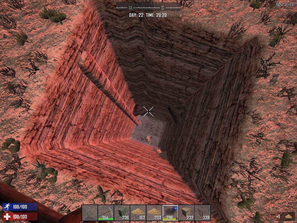 ここはまだ面倒くさいのと建造素材がないので地面露出してますが、深さがないので、透過視されます