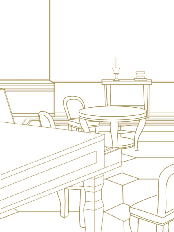 今回は背景を描くので、背景に使う音楽室を見ながら描いています